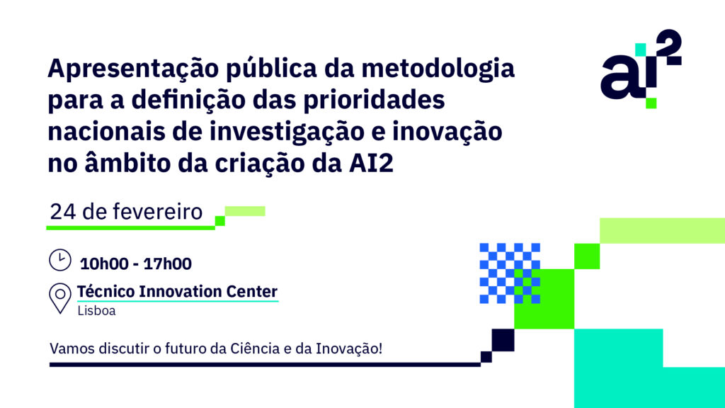 No dia 24 de fevereiro, no Técnico Innovation Center, em Lisboa, terá lugar a apresentação pública da metodologia que suportará a definição das prioridades nacionais de investigação e inovação, no âmbito da criação da Agência para a Investigação e Inovação (AI²). O evento é destinado a decisores políticos, representantes do setor científico e empresarial e demais agentes do ecossistema nacional de investigação e inovação.