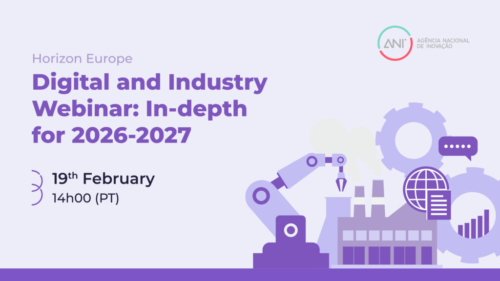 No âmbito da preparação do biénio 2026-2027 do Horizonte Europa, a ANI promove uma sessão informativa dedicada ao Digital e à Indústria (Cluster 4), dirigida a entidades que pretendem iniciar ou consolidar a sua participação nos próximos concursos europeus de investigação e inovação (I&I).